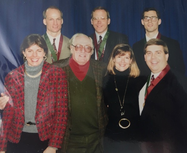 Former coaches Harriet DuBose (front row, left) and Kathleen Parker (front row, third from left) flank Reid Buckley.