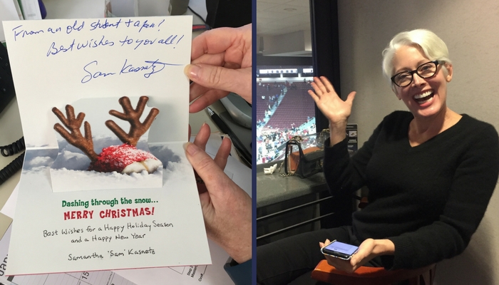 Seasons greetings: Holiday wishes from alumni, the gift of catching up with former coach Libby Heath at a holiday basketball game.