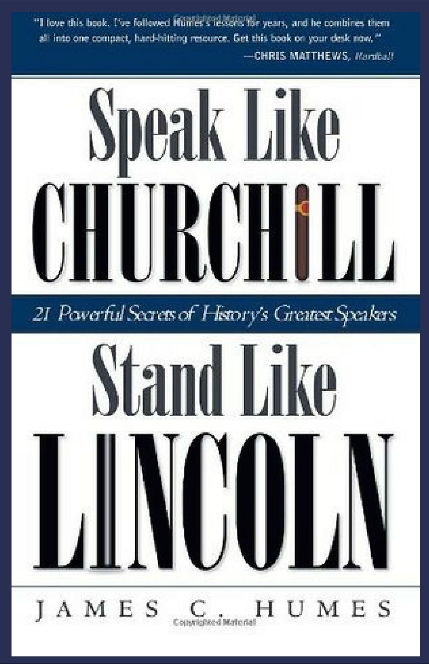 Those books also led Karen to discover James Humes. Humes wrote speeches for Ronald Reagan and Dwight Eisenhower. Humes, who has reenacted Churchill speeches, has written a number of books about Churchill’s techniques and how other speakers can use them.