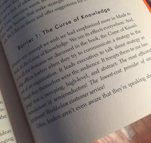 "The curse of knowledge." That might be the nugget we use most when we work on speeches and presentations, though the entire book is full of good stuff, presented in a fun-to-read style.