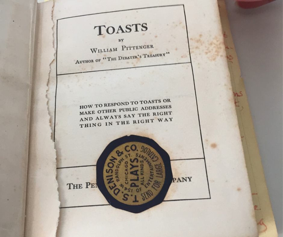 If he is to offer a toast, he examines the list furnished in this volume, finding one perhaps that pleases him, or one is suggested which is better adapted to his purpose than any in the book, and he wonders at the stupidity of the author in omitting it…. Thus gradually and unconsciously he has prepared himself for the part he is to perform.