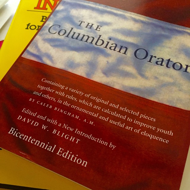 It’s rare, but every once in a while we do work with a speaker who carries a copy of this same book Frederick Douglass is referencing. The book is The Columbian Orator, a collection of essays, dialogues and poetry that was used to teach public speaking during the 19th century.
