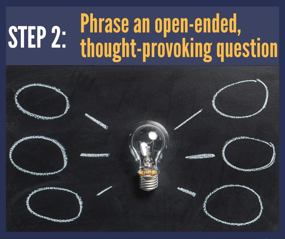 If you’re asking a rhetorical question to provoke thought, don’t blow this next critical step: Pause for a beat, let the question sink in, give the audience a chance to ponder it and answer it for themselves.