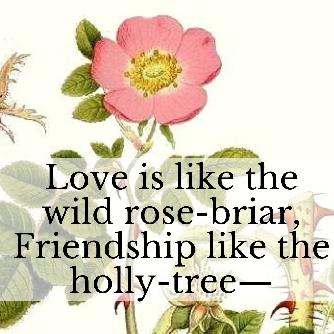As for the plants in the poem, we know the holly tree and we're going to assume a wild rose-briar is the rosa rubignosa or sweet-briar rose, though if you have more accurate information on that, we'd love to hear it!