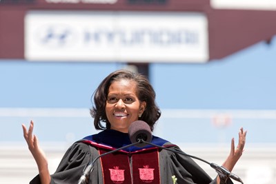 Michelle Obama delivering a commencement address at Virginia Tech.