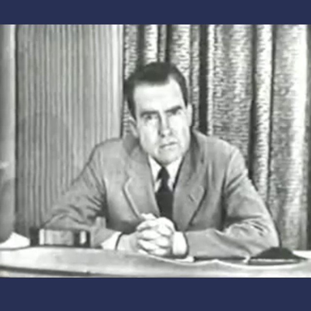 It was a little cocker spaniel dog in a crate that he'd sent all the way from Texas. Black and white spotted. And our little girl—Tricia, the 6-year-old—named it Checkers. And you know, the kids, like all kids, love the dog and I just want to say this right now, that regardless of what they say about it, we're gonna keep it.