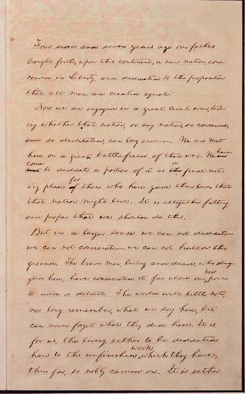 The John Hay version, referred to by many as the second draft of the Gettysburg Address.