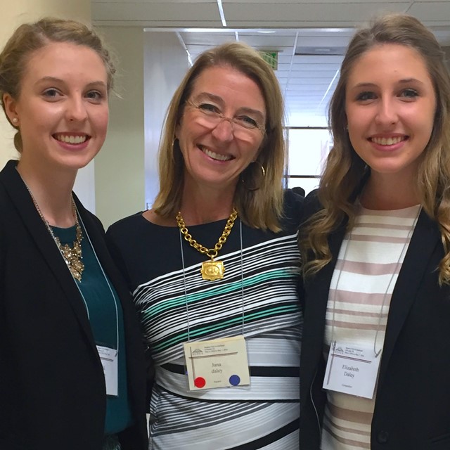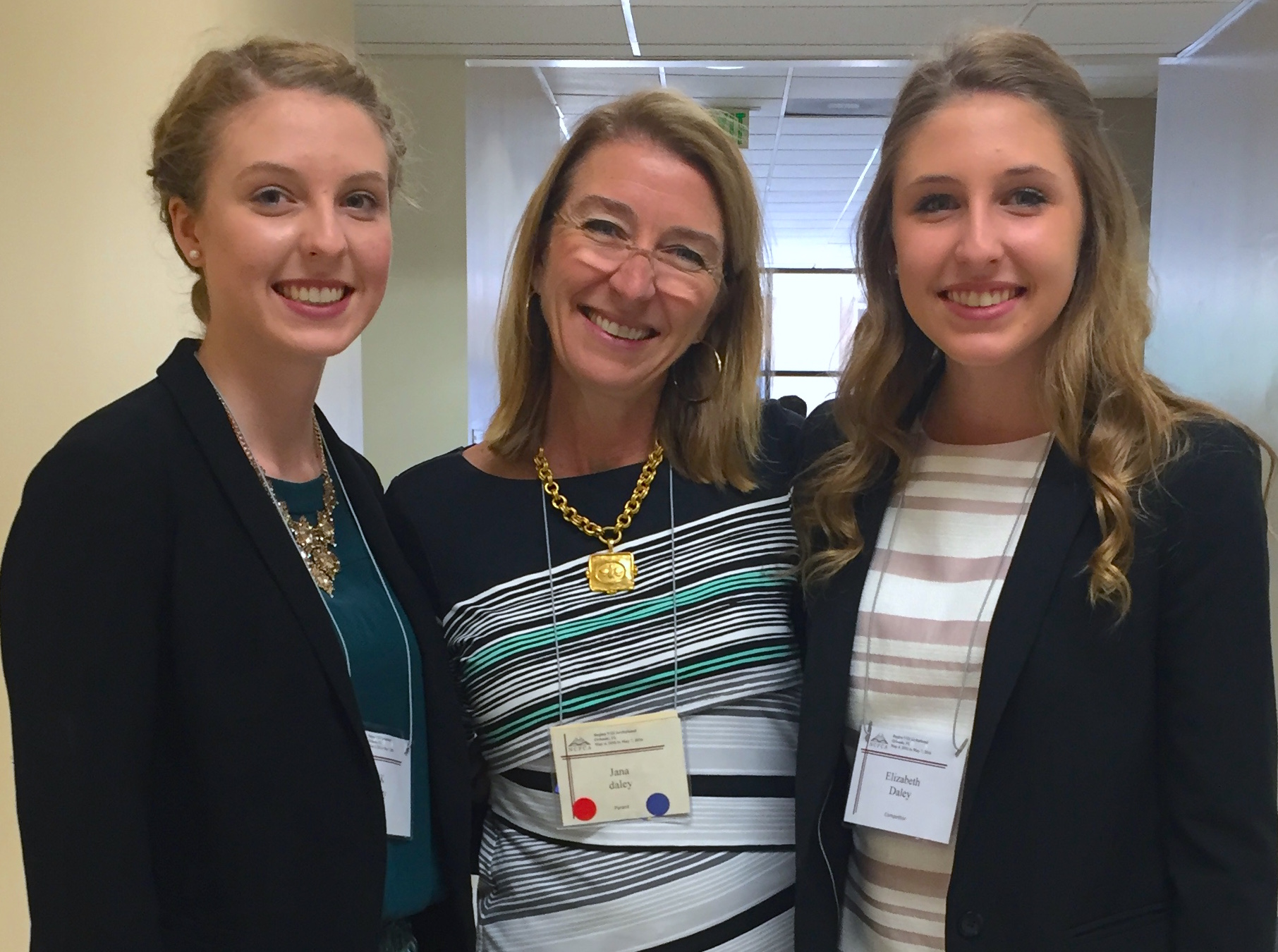 Jana flanked by daughters Anna Katherine and Elizabeth. With college campuses closed because of the coronavirus, both are back with their laptops, once again completing their lessons at home.