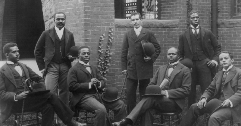 Dunbar, right rear, in a photo taken at Howard University in 1900.