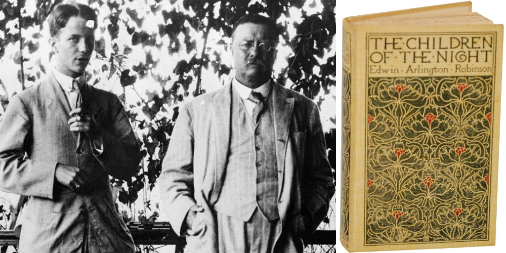By the early 1900s, Robinson was writing less, drifting between jobs, and drinking heavily. Then in 1904 Kermit Roosevelt, son of President Theodore Roosevelt, showed a book of Robinson’s poems to his father. The president became a fan, convinced Scribner’s to reissue The Children of the Night, wrote a review of it himself, and helped Robinson get a steady job at the New York Customs House.