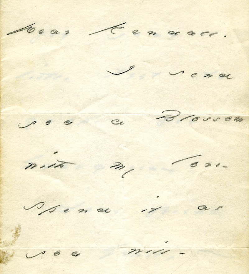 Letter from Dickinson to Kendall Emerson that opens with "I send you a blossom." Dickinson often sent poems with her letters, as well.