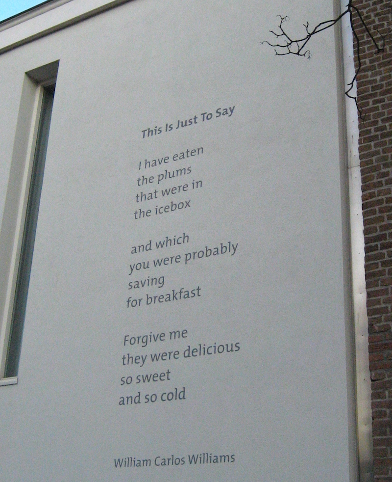 One of his best-known poems is "This Is Just to Say," which has been commemorated on a wall at The Hague.