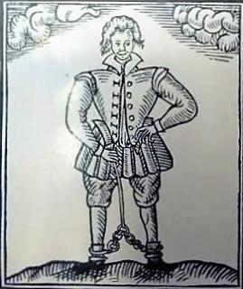 A woodcut mocking Nashe as a jailbird, from "The Trimming of Thomas Nashe, Gentleman" written by Richard Litchfield in 1597, when Nashe would've been around 30 years old.