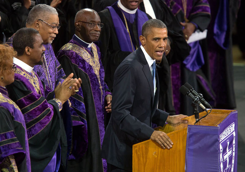 President Obama delivering the eulogy for Reverend Clementa Pinckney in Charleston on June 26, 2015, one of the speeches included in 'It Was Said.' (Photo by Lawrence Jackson)