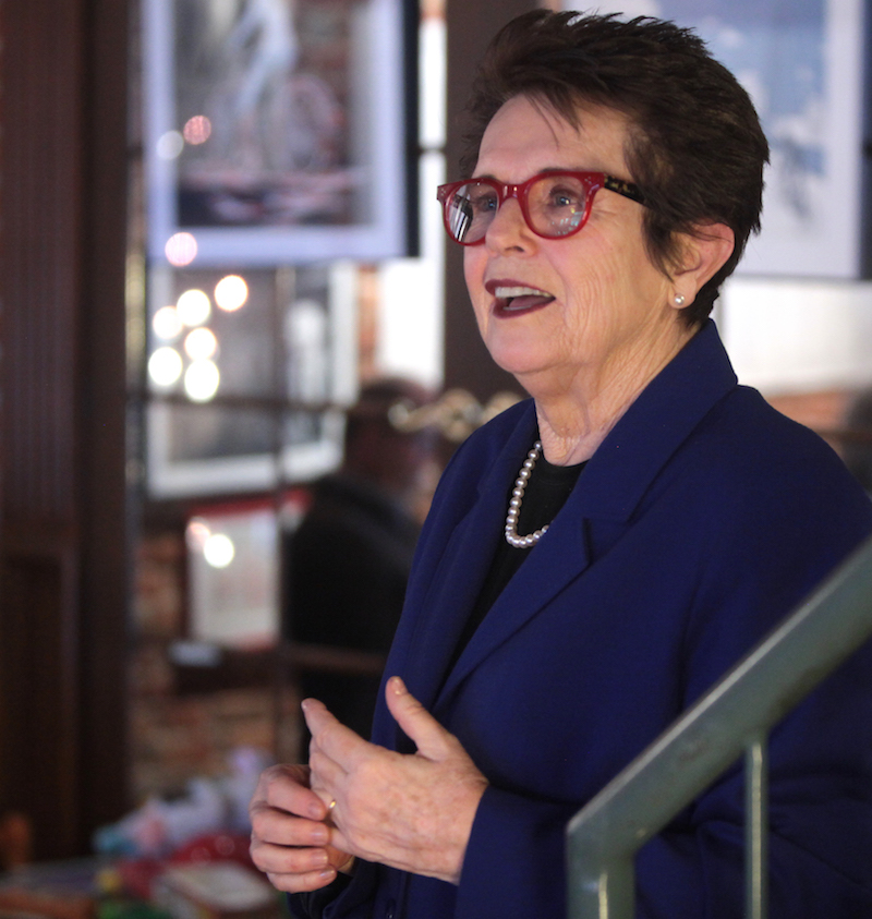 Billie Jean King speaking at an event in 2016. (Photo by Gage Skidmore)
