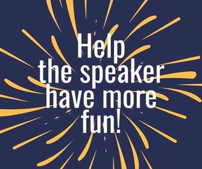 Most speakers—even low-key speakers—are more expressive when they tell a story. Be sure the story has a clear point and that the speaker knows why he’s telling it. Keep the story shorter rather than longer. But when you have a speaker who needs to “smile more,” a story may be the surest route to getting genuine smiles.