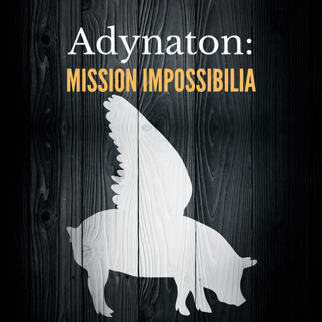 If you'd like to learn a bit more about the Mission: Impossibilia of rhetorical devices, you might enjoy this article which includes examples of people trying to prove that pigs can fly and that a camel can, in fact, pass through a needle.