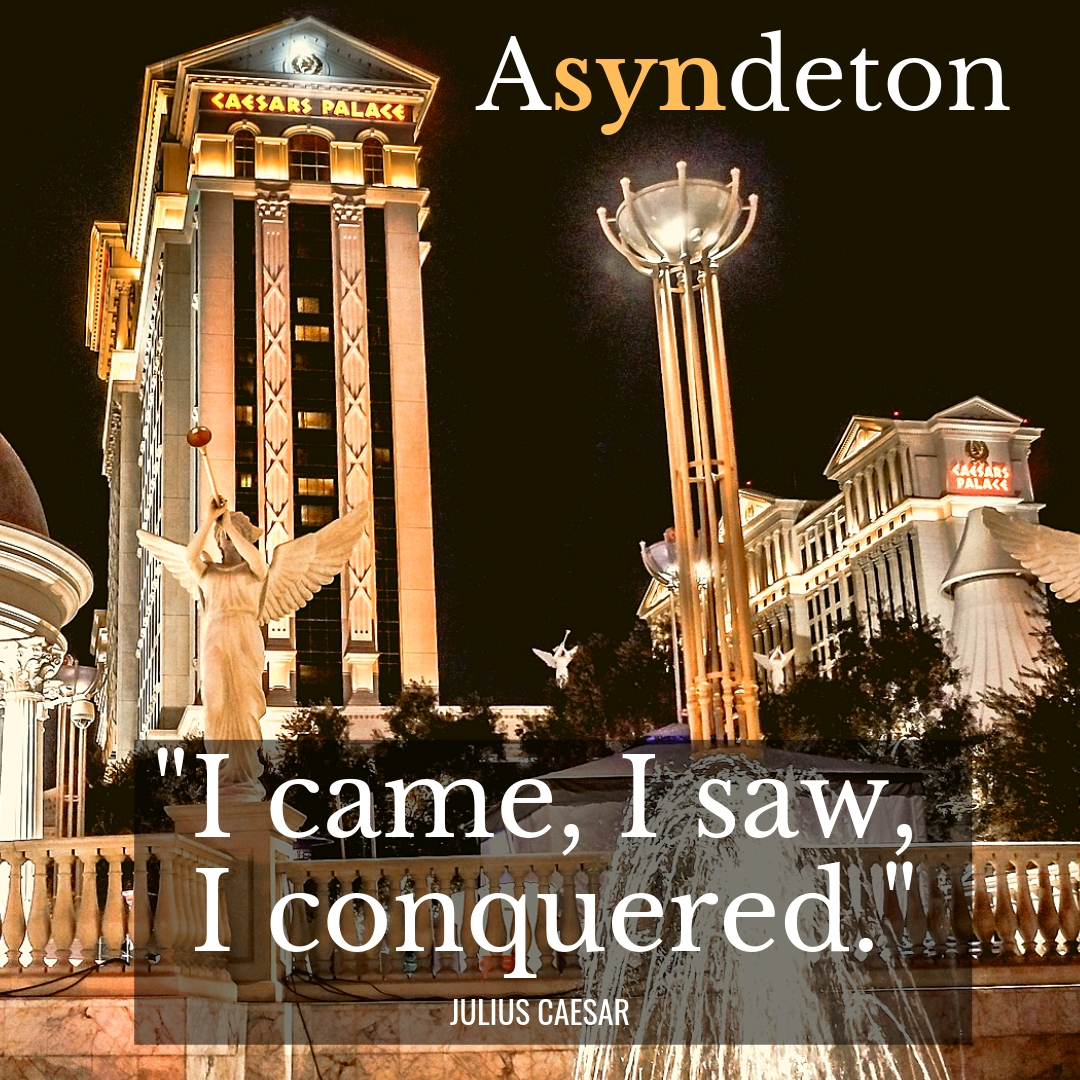 Pronounced uh-SIN-de-TON (perhaps it helps to think "I sinned a ton on that last trip to Caesar's Palace"), asyndeton is a Greek word that means "unconnected."