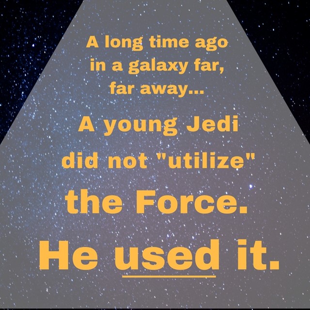 Remember the Force when you’re tempted to say proceed to the exterior outlets instead of go to the doors or when you’re utilizing a pencil to take notes when you could just be using it.