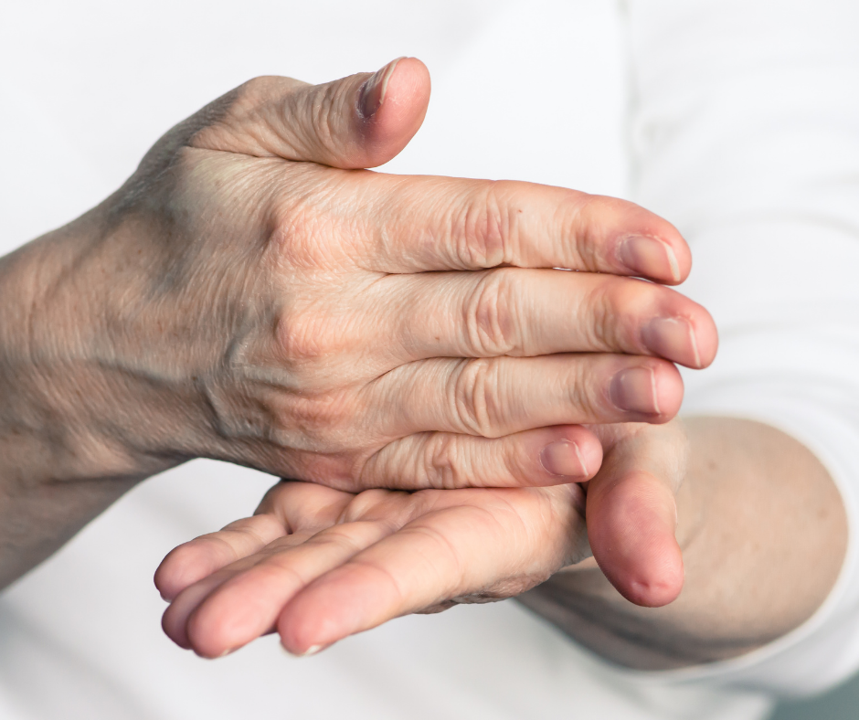 Bringing the side of one hand down onto the palm of the other is a natural way to emphasize a point about cutting or stopping something.