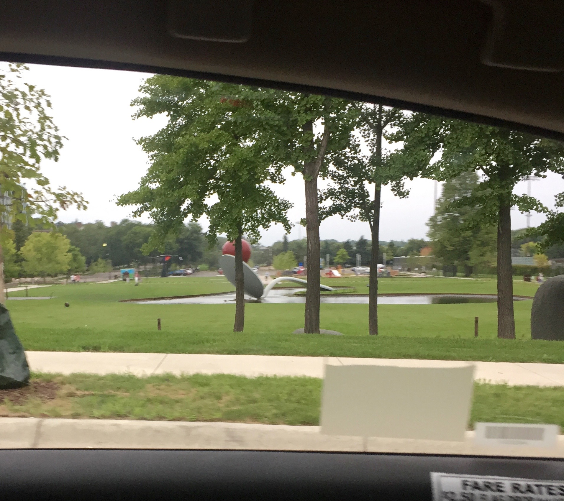Catching a glimpse of Spoonbridge and Cherry from our cab.