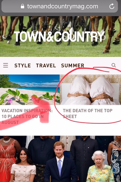Find it in Town & Country online: Suzanne Pollak weighs in on the top sheet.