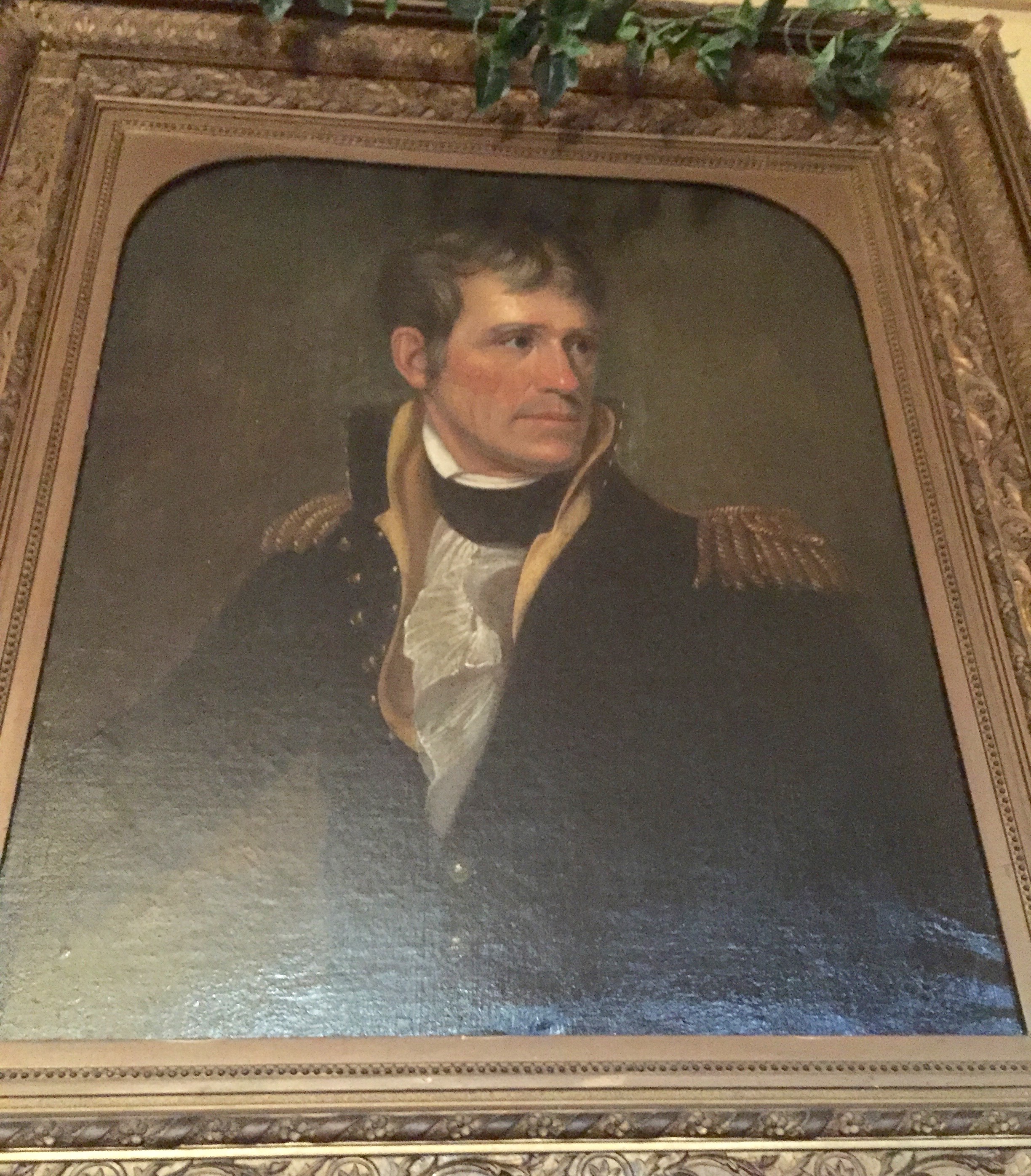 Over the mantle now, you’ll see a portrait of young Andrew Jackson, a gift from the Buckley family. Andrew Jackson was only 13 years old when he was wounded, captured by a British officer, and held prisoner in Camden.
