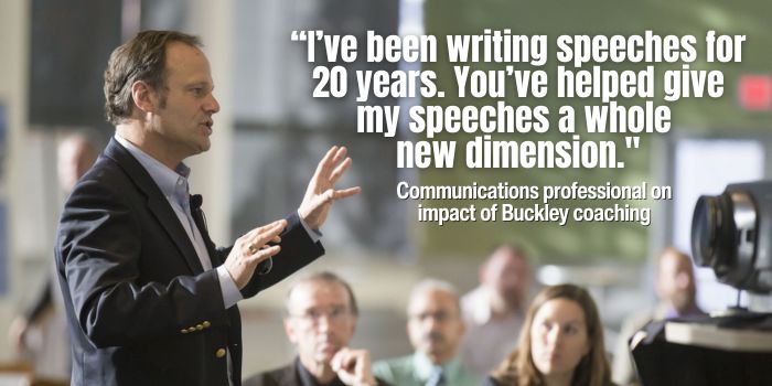 Buckley coaches can help you and your team get ready for speaking engagements, develop presentations and pitches, prep for media opportunities, and more.